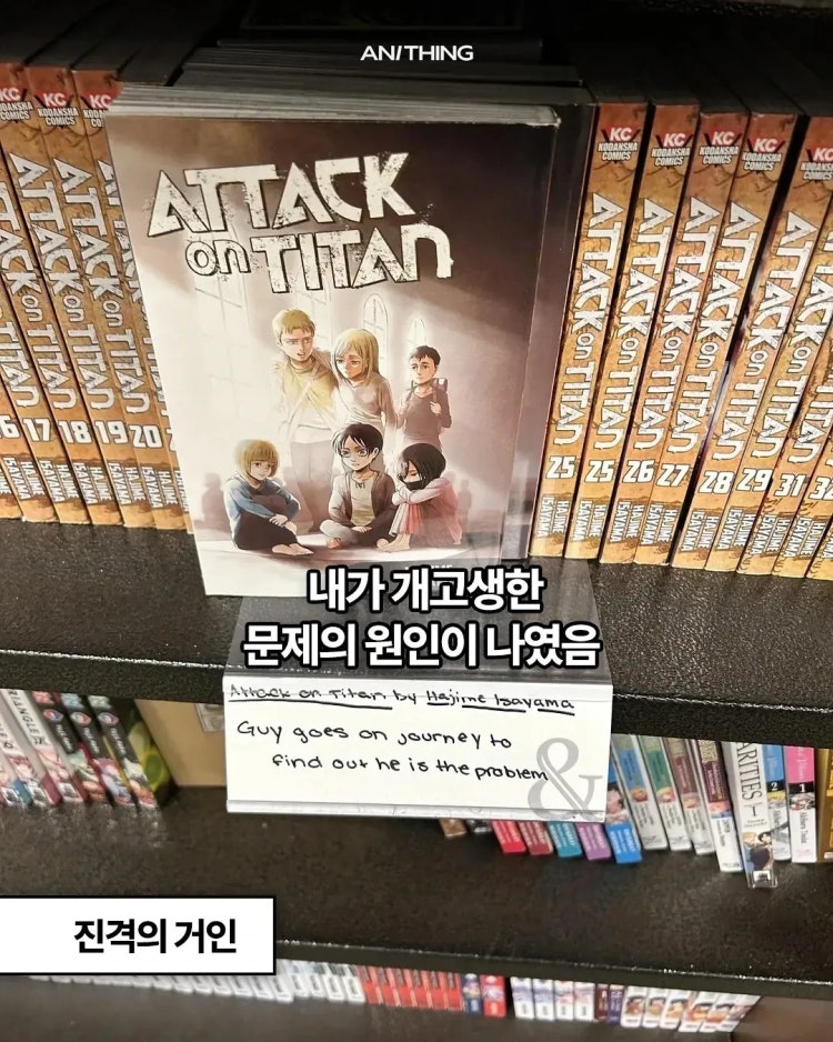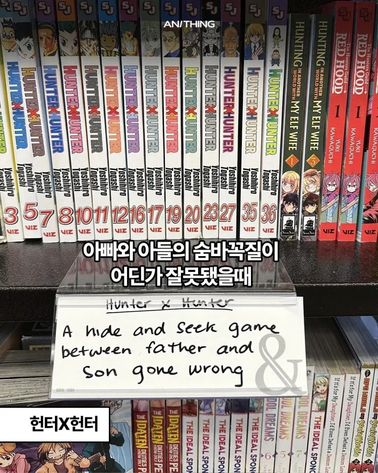 짤좀 찾아주세용 외국에 만화가게같은데 붙여져있는 일본애니들 한줄설명하거 해석되어져있눈 짤이에용