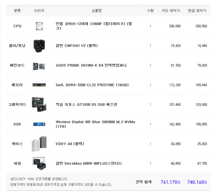 – 택배비, 조립비 등 모든 비용이 포함된 총 견적 금액을 꼭 확인하고 타사와 비교하세요.