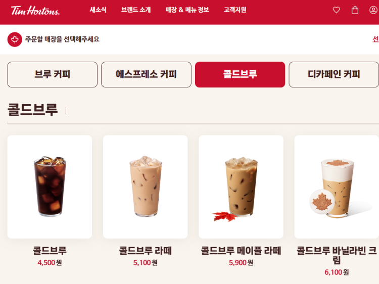 한국 팀홀튼에는 일반 아이스 커피는 없습니다.