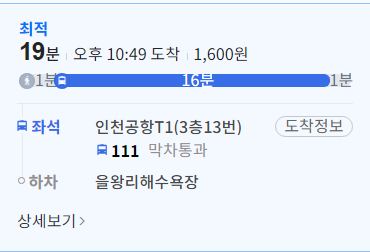 인천공항 a터미널에서 111번 탑승 을왕리 해수욕장 하차