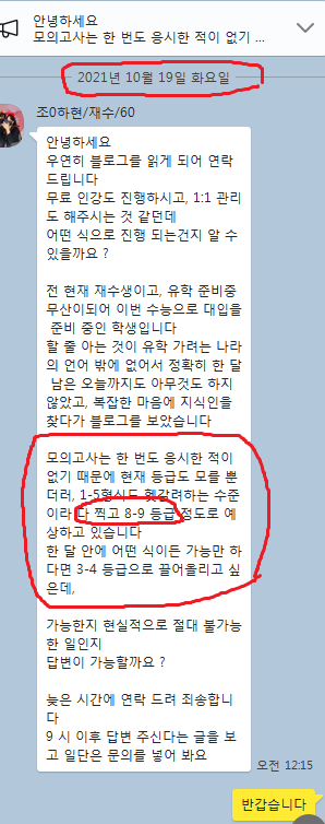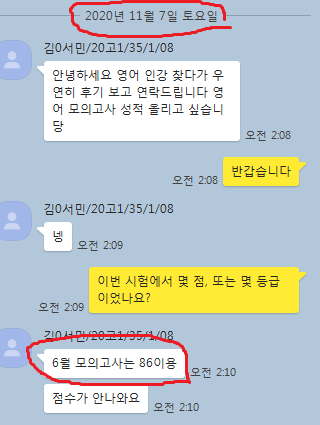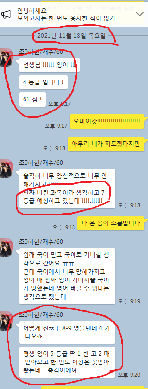 *문산 수억고 3학년. 7등급 6개월 수강하여 수능 3등급(수능 날짜 확인 요망)