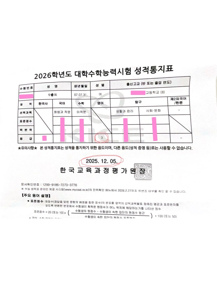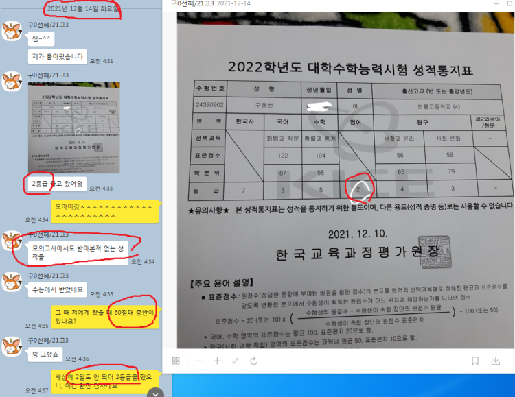 고3. 4등급 50일 수강하여 수능 2등급(성적표 확인 요망)