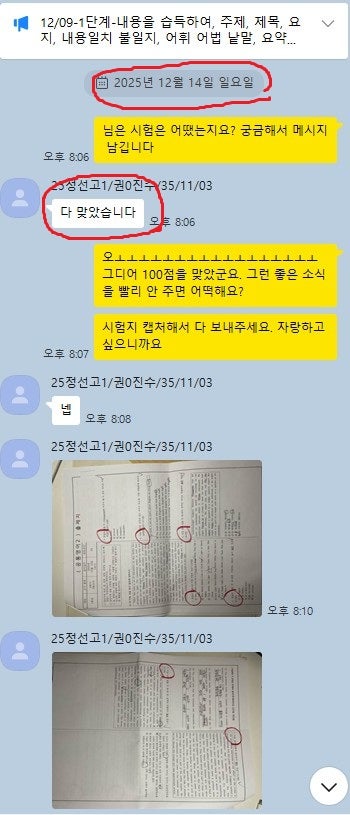 아래는 이렇게 공부한 학습자들의 기간과 성적표입니다. (각 학교의 시험 날짜 검색해서 확인해보세요)