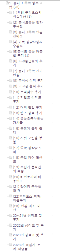중.고생 후기는 카테고리 1번의 (8/9)번에 모두 들어 있고 7~9등급들의 후기는 (6)번에 들어있습니다. (7)번의 [유니크 쏙쏙의 신기한 현상]을 꼭 읽어보세요. 셀 수 없이 많은 신기한 현상을 볼 것입니다.