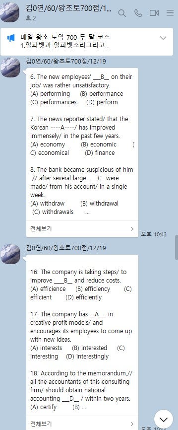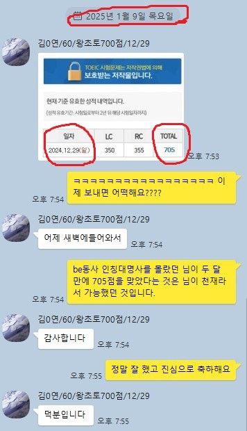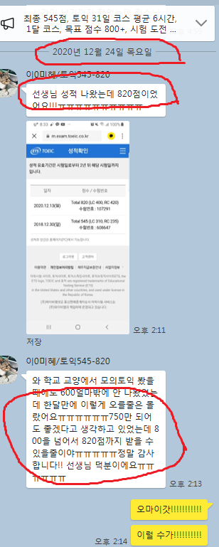 성적표와 함께 토익 후기는 (10)번에 있으니, 살펴보시고, 허송세월을 보내지 않고 초고속으로 고득점을 성취하고자 한다면 [카톡 상담 요령]이 있으니 살펴보세요.