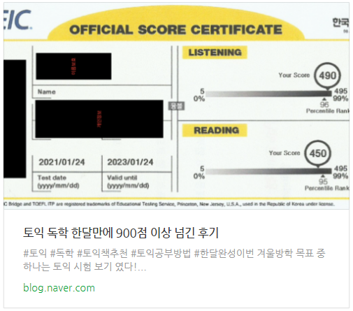 유명 학원과 인강 수강하면서 650점 →3개월 수강한 후 910점(260점 상승)