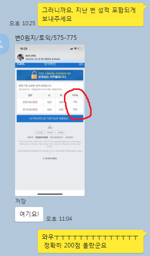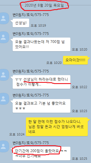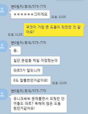 1년 전 575점-1달 수강한 후 775점(200점 상승)