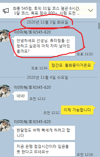 처음 시작하는 5-6등급 학습자 460점 →4달 수강한 후 820점(360점 상승)