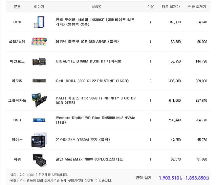 – 택배비, 조립비 등 모든 비용이 포함된 총 견적 금액을 꼭 확인하고 타사와 비교하세요.